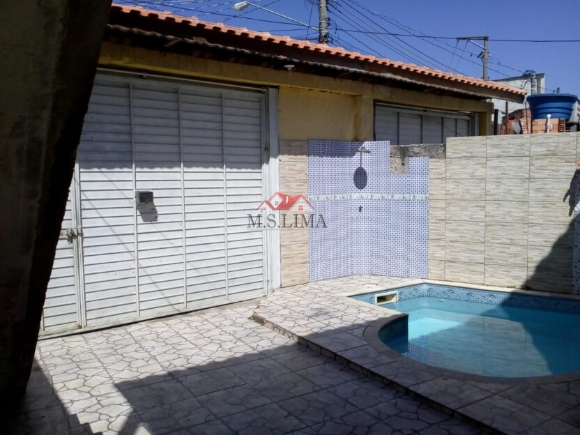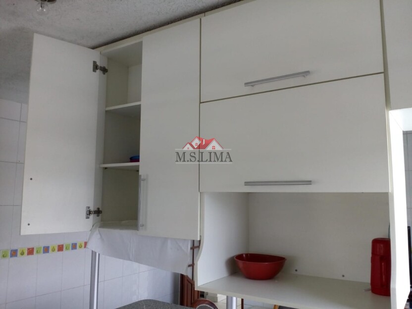 O imóvel possui 02 dormitórios ,01 copa , 01 cozinha , 01 sala ,01 banheiro , área de serviço , 01 vaga de garagem , 01 piscina , portão automático , salão de festas com churrasqueira , banheiro e área e atividades sem coberturas.